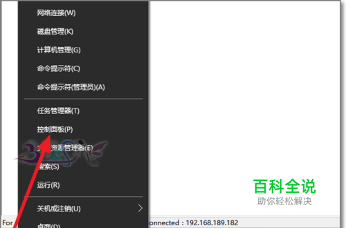 首先右键点击Windows10电脑的开始,在右键菜单中选择控制面板。