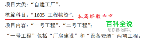 本系列第23-26篇经验讲解“项目目录”的设置,相关资料如图。本篇经验讲解将项目大类“自建工厂”指定核算科目为“工程物资”的操作步骤。