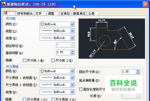 绘制一个简单的矩形,尺寸随意,比如60X40,用来作为标注的对象。 输入D,回车,打开标注样式管理器,选中ISO-25,单击新建按钮,新建一个标注样式,改名为ISO-25(10),确定后进入新建标注样式对话框,如图所示。