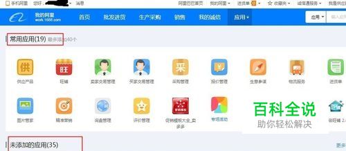 首先登录“我的阿里”后台,点击上方的“应用”,之后就可以进入全部应用的页面。里面有我们常用的应用和未添加的应用。