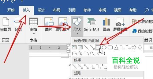 首先我们在电脑上打开Word,然后依次点击“插入/形状”菜单项,选择一个想要插入的图形形状。