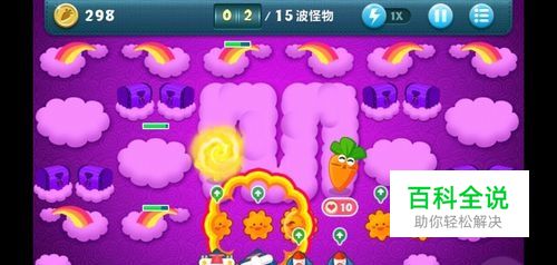 这关关键在于选择星星作为主攻炮塔,把太阳,毒针全删掉。这关的难度在于后期,怪跑太快了,一溜烟的功夫,萝卜就不见了一口。综合难度算是较高的。