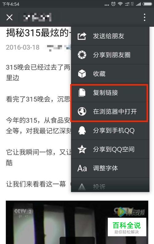 复制文章链接地址。首先,找到含视频的文章,并点击右上角三点,复制文章链接在浏览器里边打开。