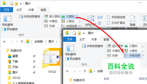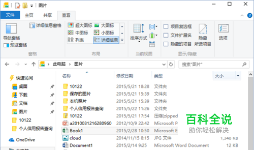 打开 文件资源管理器,切换到 详细信息视图。 在 详细信息视图下,文件资源管理器才会显示 名称、 修改日期等文件列表的标题,这也是实现文件筛选的前提。