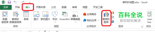 1.选中表格的数据区域——点击插入——推荐的图表——堆积折线图。