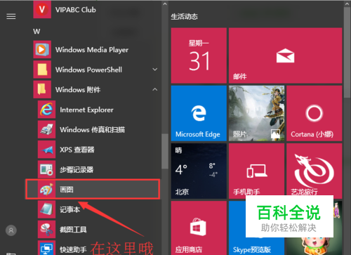 点击左下角的【开始】,鼠标往下滑,找到【Windows附件】,单击找到【画图】,再点进去。