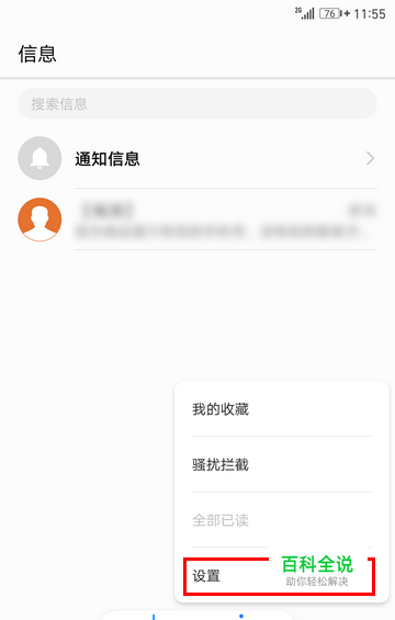在短信界面中点击底部的一排竖点,然后在弹出的菜单中点击“设置”。