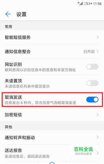 一、打开短信的“取消发送”开关