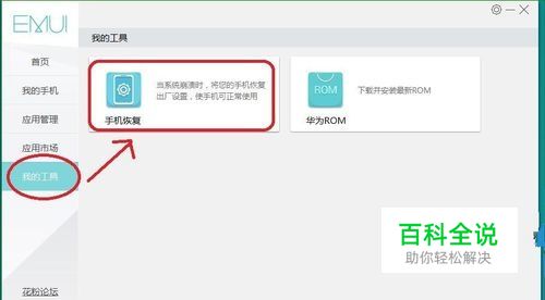 打开HiSuite的"工具">"我的工具">"手机恢复"
