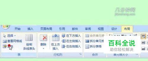 在Word2007表格中选中标题行,注意必须是表格的第一行。在Ribbon界面中切换到“布局”选项卡,然后在“表”组中单击“属性”按钮,打开“属性”对话框。