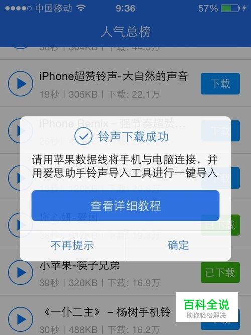 下载自己需要的铃声,显示下载成功