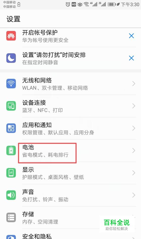 进入设置后,我们点击电池;
