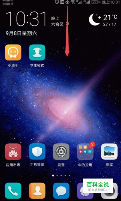 首先,我们打开我们的华为手机,然后在屏幕的最上方进行下滑一下;