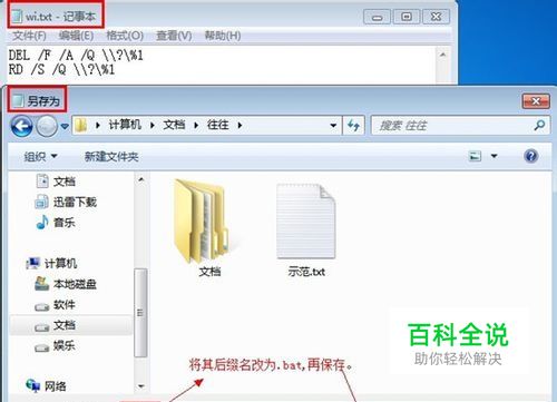 方法一:新建一个“文本文档”将下面的内容复制粘贴到文档中并另存为.bat批处理文件,再将需要删除的文件直接拖到批处理文件图标中即可。如下图所示: DEL /F /A /Q\\?\%1 RD /S /Q \\?\%1