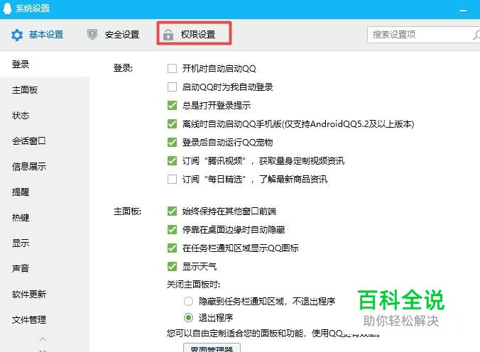 弹出的界面,我们点击权限设置;
