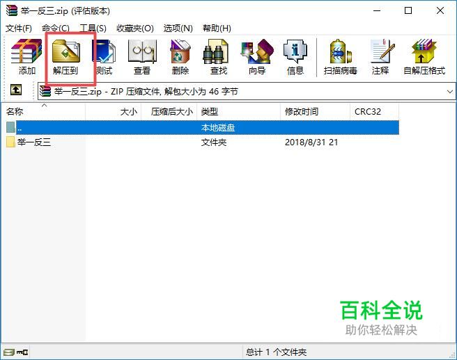 弹出的界面,我们点击解压到,如图所示;