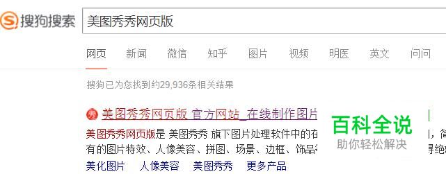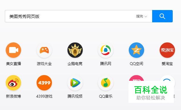 首先在搜狗浏览器中输入美图秀秀网页版并点击回车键,如下图所示。
