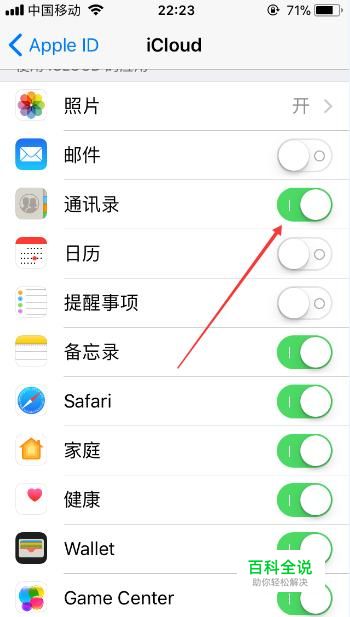 进入到【iCloud】页面后找到【通讯录】,然后关闭【通讯录】。
