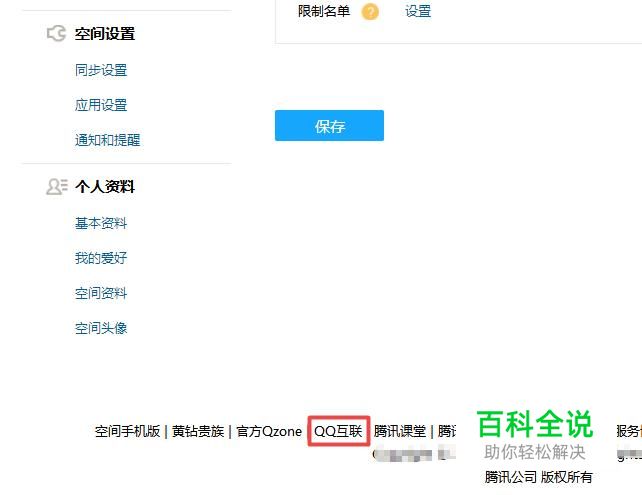 进入QQ空间之后,我们将界面下拉到最下方,然后我们点击QQ互联;