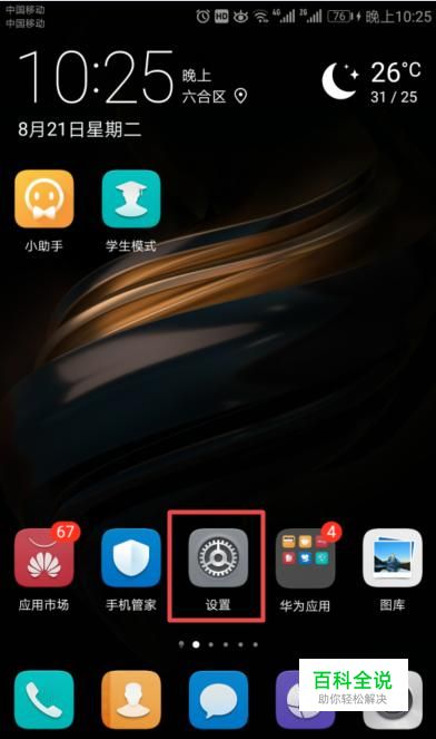 首先,我们需要用数据线将手机和电脑连接起来,之后我们点击手机桌面上的设置;