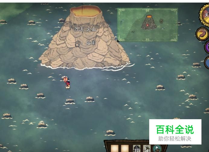 打开饥荒海难,找到火山,晚上比较好找,因为晚上会有一条发光水母构成的路通向火山。