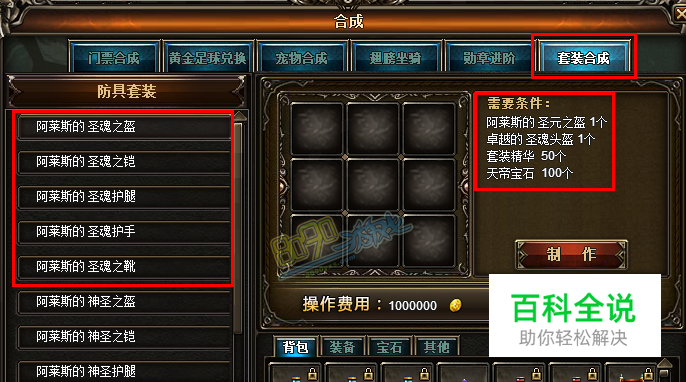 奇迹来了阿莱斯的圣元套装已经在之前的攻略中为大家详细介绍过了,今天为大家介绍奇迹来了如何升级成圣魂套装呢?升级圣魂套装需要哪些材料? 升级阿莱斯的圣魂套装需要满足以下条件: 阿莱斯的圣元任意组件*1、卓越的圣魂任意组件*1、套装精华(各部件所需的数量不同)、天帝宝石(各部件所需的数量不同)。详情点击快捷键(X),选择套装合成功能,里面会显示具体合成材料数量。 圣导师:卓越的阿莱斯的圣魂套装属性: 2件套属性:防御力+181 3件套属性:最小物理攻击+90,最大物理攻击+230;最小魔法攻击+90,最大魔法攻击+230 4件套属性:会心一击率+25%;会心一击伤害+300 5件套属性:伤害增强+10%;防御力+7% 以上就是奇迹来了如何升级成圣魂套装,以及升级圣魂套装需要哪些材料的详细攻略。快来进入游戏与小编一起体验圣导师的乐趣~
