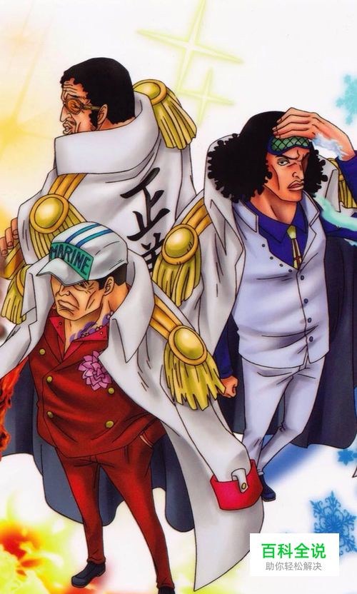 2.从称号看,四皇有“世界最强男”“单挑之王”“最强生物”连非四皇都有各种逼格满满的称号“第一剑客”“最凶恶女人”之类的。作为维护秩序的大将怎么可能自称“第一神拳”、“光之子”(太羞耻了)更不必说“爆头穿胸王”“陨石地震王”之类暴力的名字,所以在名号上,大将又低了半分