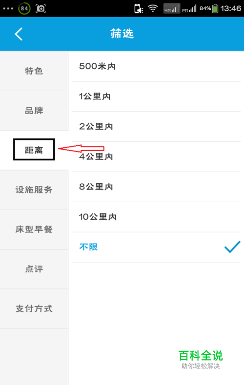 距离:点击左下角的筛选按钮,默认出现的就是距离,你可以根据自己的身体状况选择适合距离的酒店哦。