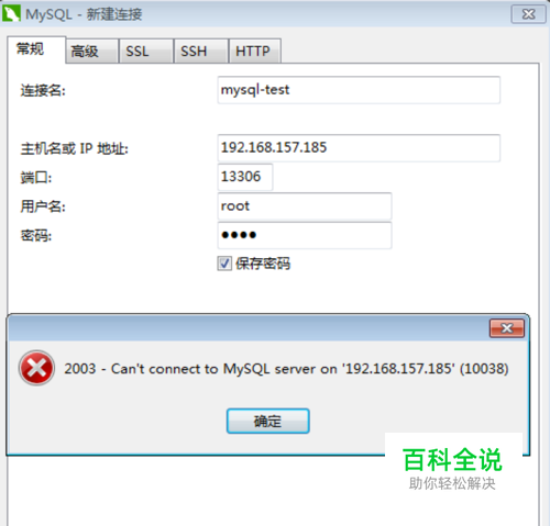 在未配置MySQL之前,根据MySQL服务端的信息,用navicate客户端进行连接测试,如图一、图二所示