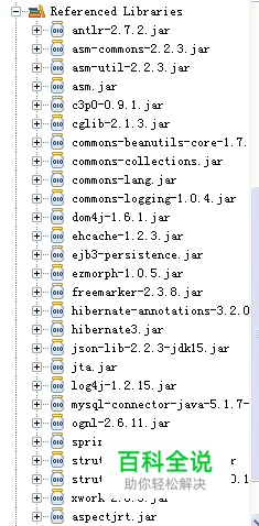 准备SSH项目所需的jar文件,数据库用MySQL.