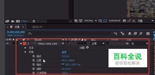 每个图层的旁边都会有一个小三角,我们展开这个小三角。 会有很多的参数里面有锚点、位置、缩放、旋转、不透明度。