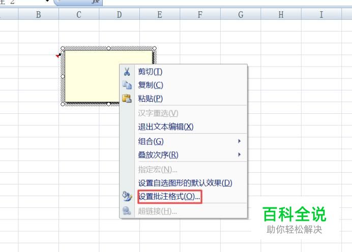 之后我们点击弹出的批注边框线,然后右击选择设置批注格式;