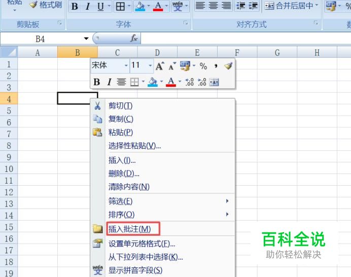 首先,我们打开我们电脑上面的excel,然后我们任意右击一个单元格,弹出的界面,我们点击插入批注;