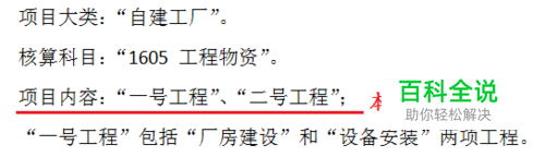 本系列第23-26篇经验讲解“项目目录”的设置,相关资料如图。本篇经验讲解将在项目大类“自建工厂”下定义“一号工程”(分类编码:1)、“二号工程”(分类编码:2)两个项目内容。