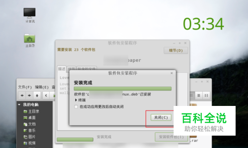 接着返回下载的目录双击deb包,看到已经不再提示依赖关系,点击安装,稍微等待一会就会安装成功了软件。安装成功后点击关闭即可。
