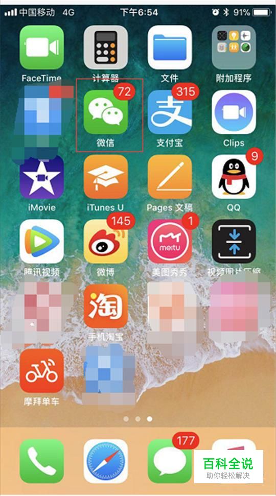 打开手机,找到微信。见下图