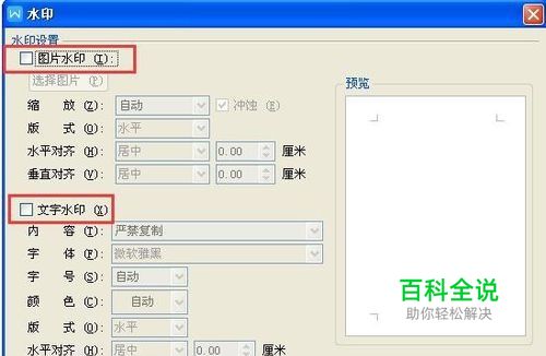 出现的水印对话框,可以看到有图片水印,也有文字水印,下面以文字水印为例