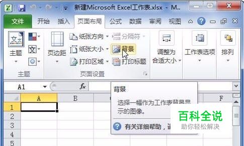 切换到需要添加背景的工作表中,然后在“页面布局”选项卡下的“页面设置”组中单击“背景”按钮