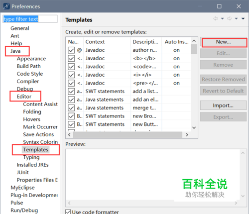 进入模板代码添加的界面,并点击new按钮