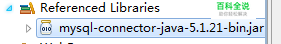加载驱动 jar程序驱动包,mysql-connector-java-5.1.21-bin.jar