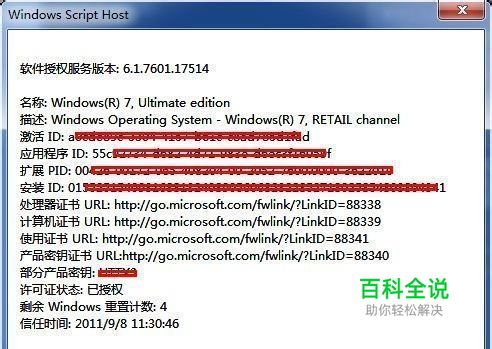 这样,通过两个方式的查询,我们比较完整地了解了本机Win7系统的授权情况和多项的授权信息提供