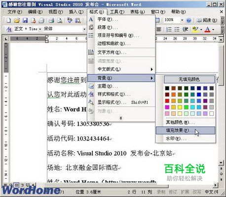 第1步,打开Word2003文档窗口,将插入点光标移动到Word文档任意位置。在菜单栏依次单击“格式”→“背景”→“填充效果”菜单命令。