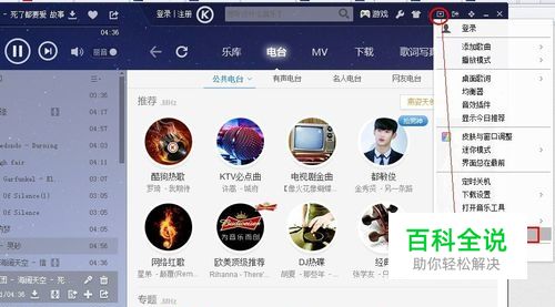 打开酷狗音乐。点击右上方的一个小箭头,打开酷狗设置。