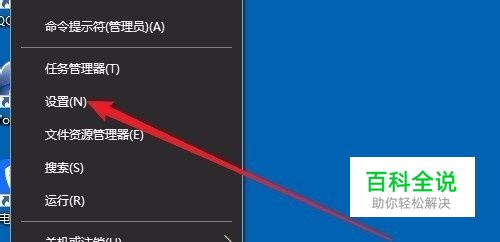 在Windows10系统桌面,右键点击左下角的Windows徽标键,在弹出菜单中选择“设置”菜单项。