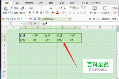 选中所有需要设置下划线的单元格(如图);
