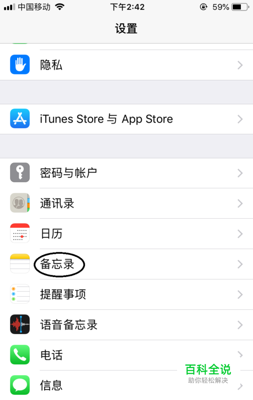 打开手机设置点击“备忘录”。