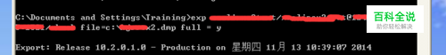 直接输入 exp 用户名/密码@远程的IP:端口/实例 file=存放的位置:\文件名称.dmp full = y。如下图: