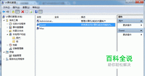 2. 在弹出的【计算机管理】窗口中找到【Guest】用户,如下图所示: