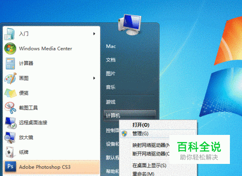 第一步:取消禁用Guest用户 1. 点击【开始】按钮,在【计算机】上右键,选择【管理】,如下图所示: