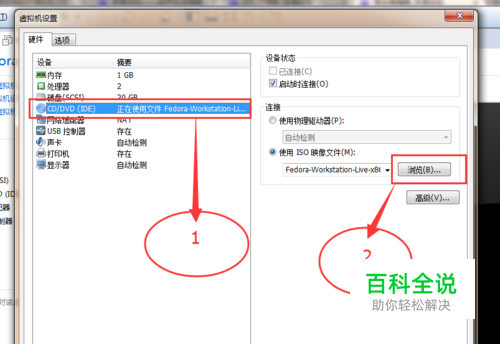 点击 CD/DVD项,并点击右侧的 浏览按钮;